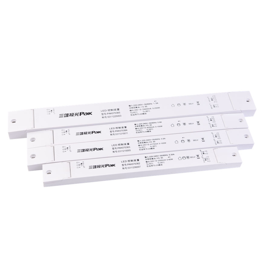 1. PC housing, simple design, rubber filled for 150W, 250W version, with excellent heatdissipation effect, effectively extending the lifespan of driver;